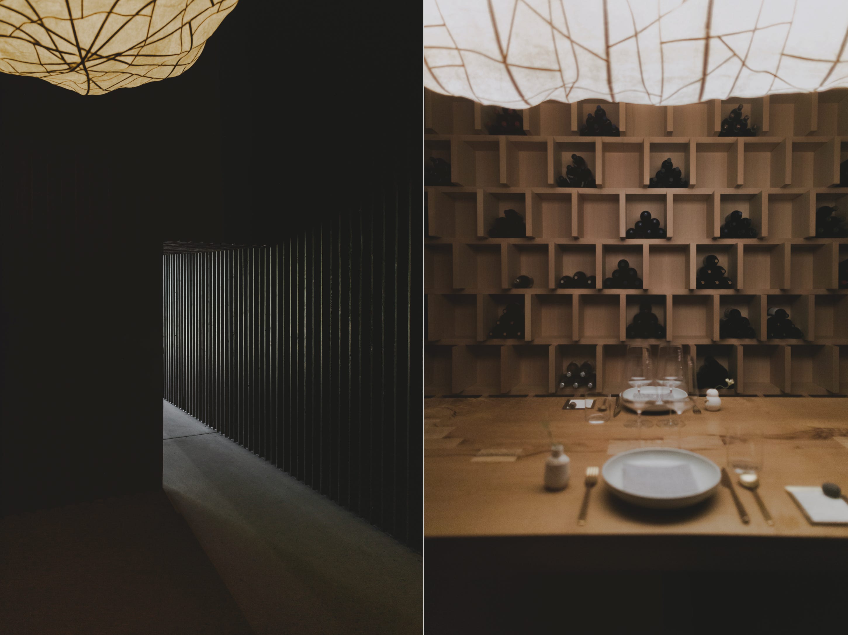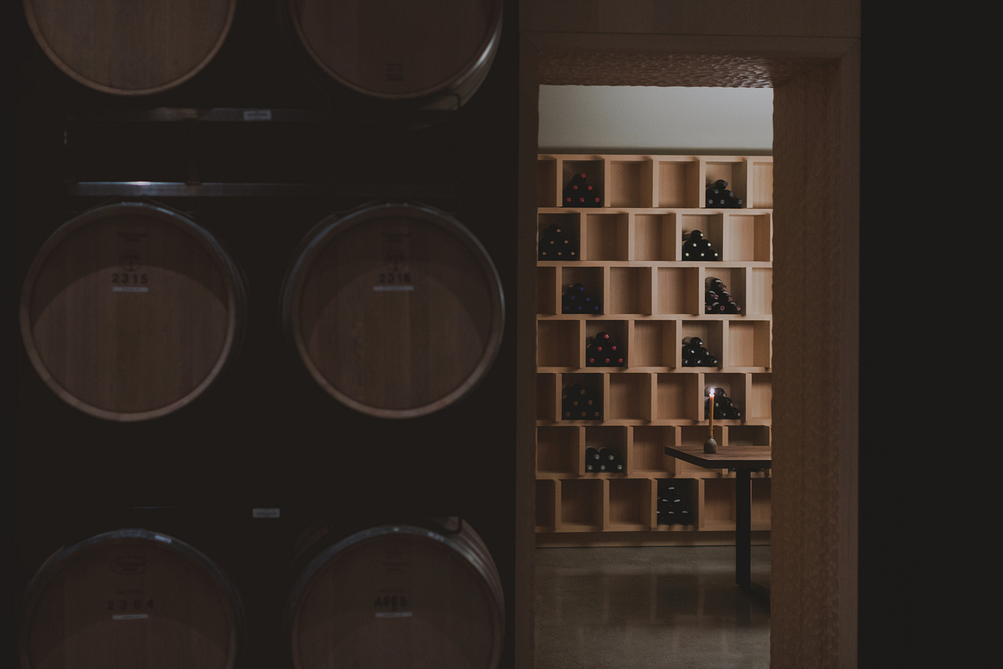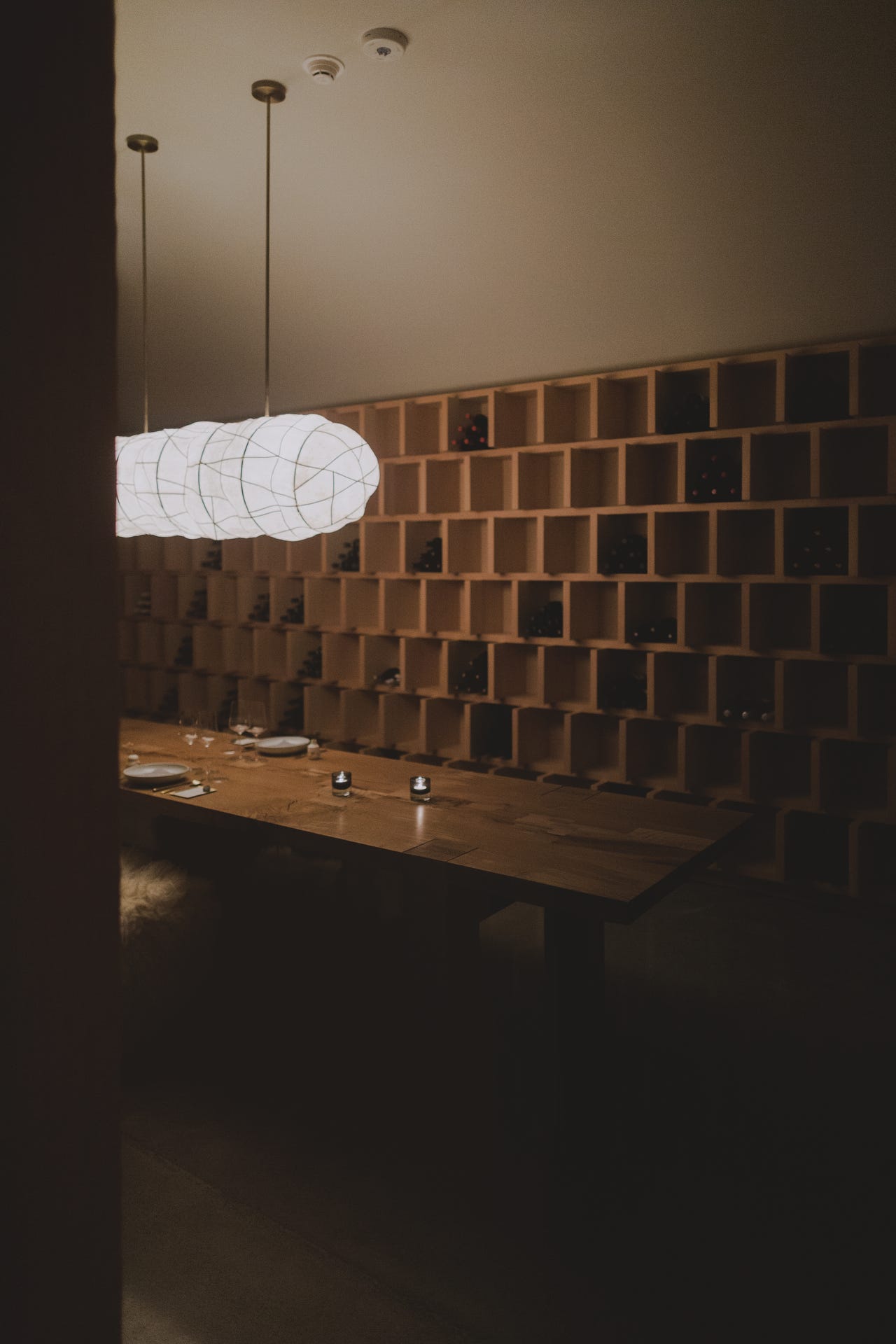 In each tasting room, the entrance threshold is detailed with the Japanese woodworking technique, naguri—a symbol of arrival. (And something that you feel compelled to engage with, to touch, to wonder about).