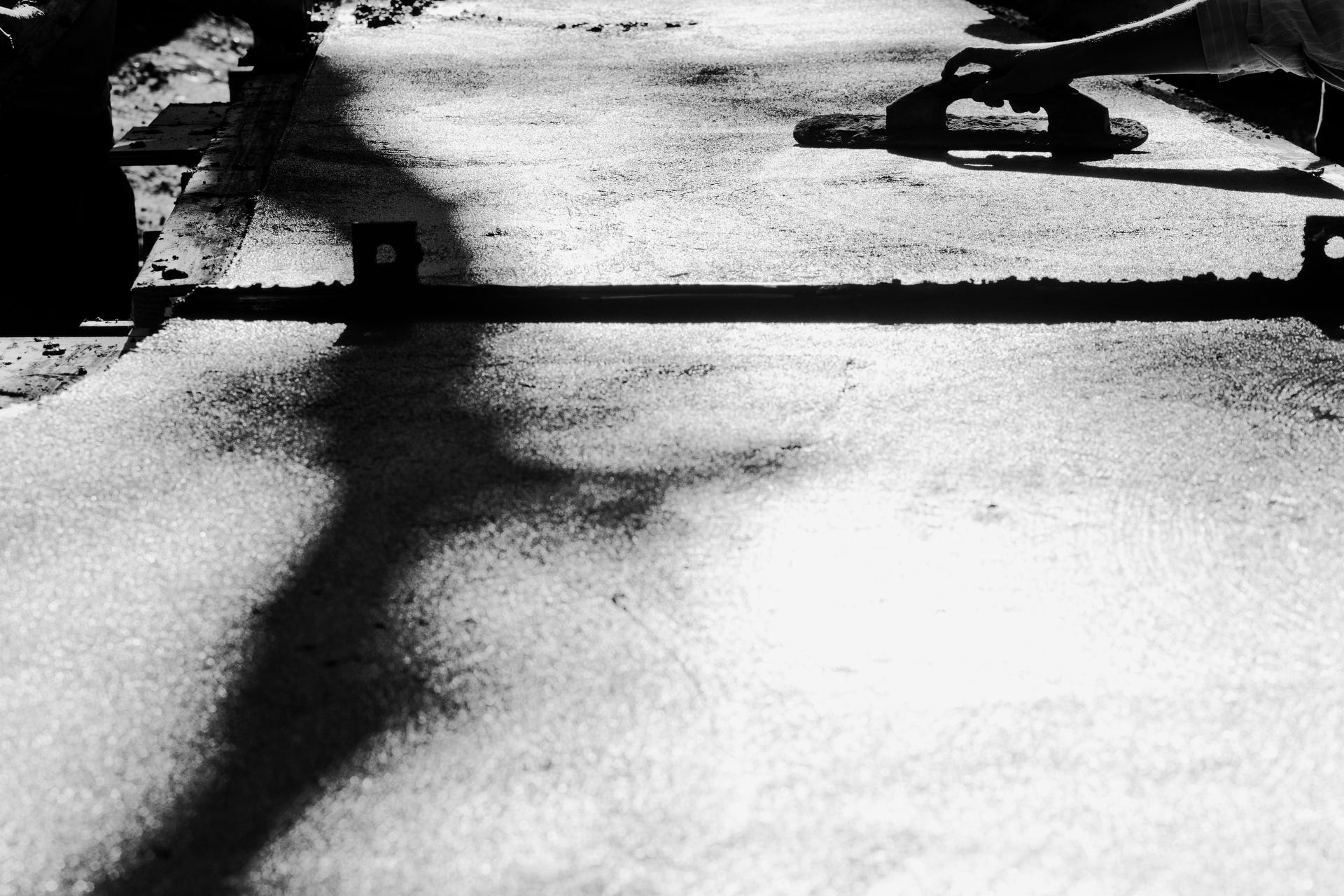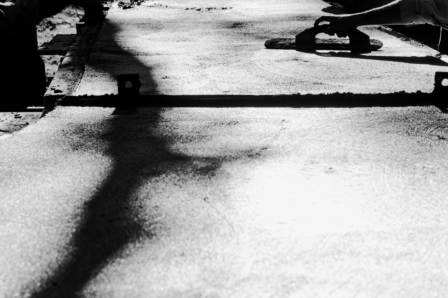 Made from concrete, the Table was cast in place directly on the land; seeded by hand with stones from the site; and finished with a surface that subverts the typical idea of concrete, exposing the gemlike stones buried within it.